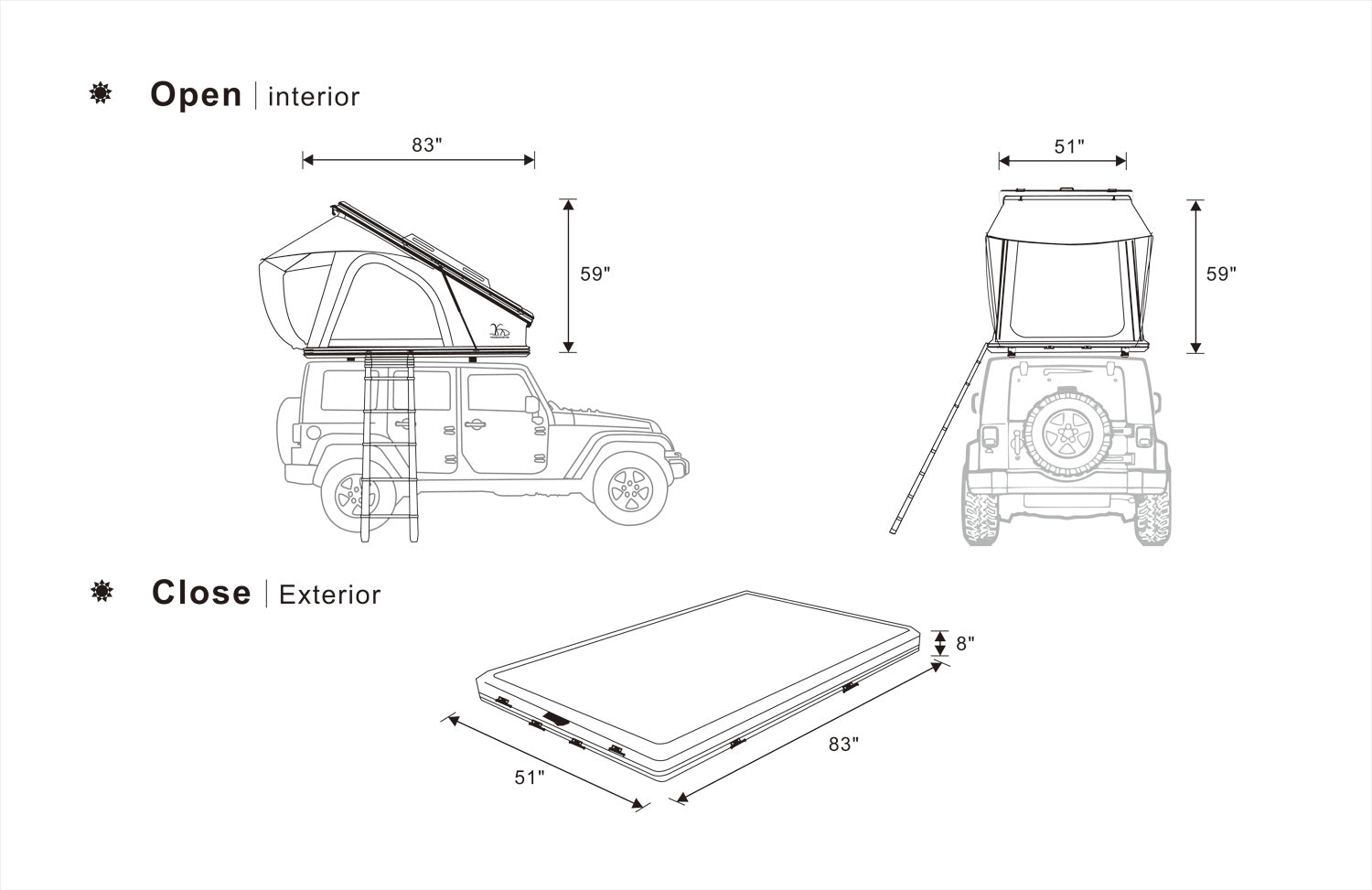 YoungHunter rooftop tents come in a variety of sizes to fit most vehicles. Our website includes a handy sizing guide to help you choose the perfect tent for your car's roof dimensions and weight capacity.