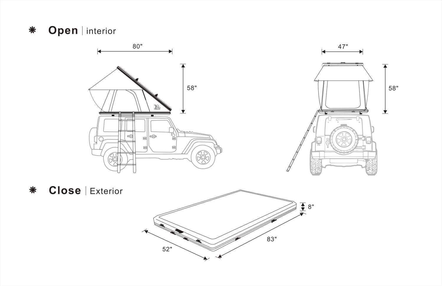 YoungHunter rooftop tents come in a variety of sizes to fit most vehicles. Our website includes a handy sizing guide to help you choose the perfect tent for your car's roof dimensions and weight capacity.