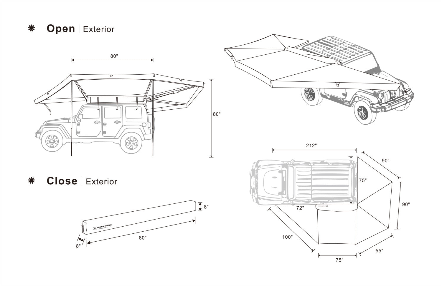 YoungHunter rooftop tents come in a variety of sizes to fit most vehicles. Our website includes a handy sizing guide to help you choose the perfect tent for your car's roof dimensions and weight capacity.