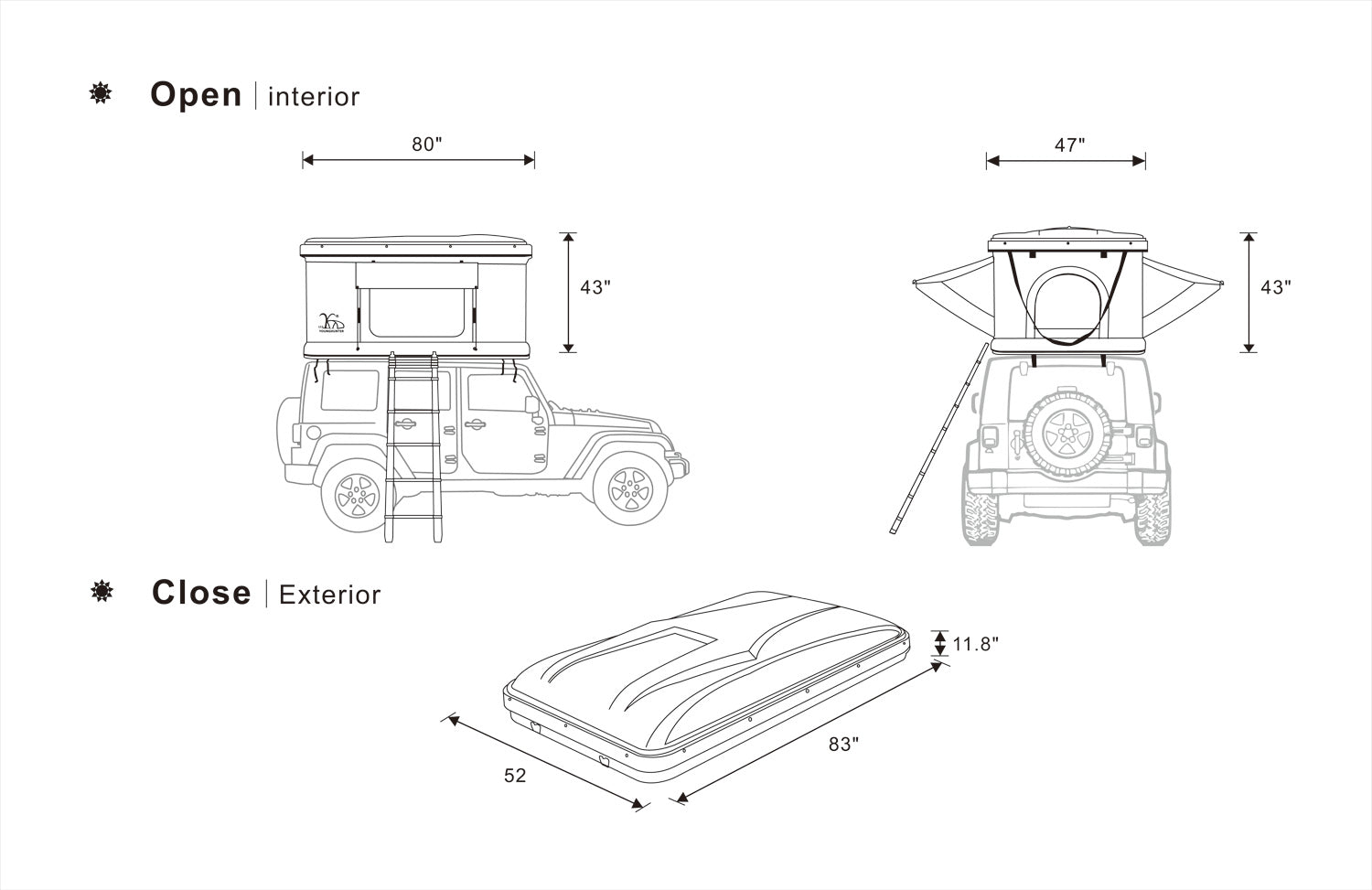 YoungHunter rooftop tents come in a variety of sizes to fit most vehicles. Our website includes a handy sizing guide to help you choose the perfect tent for your car's roof dimensions and weight capacity.