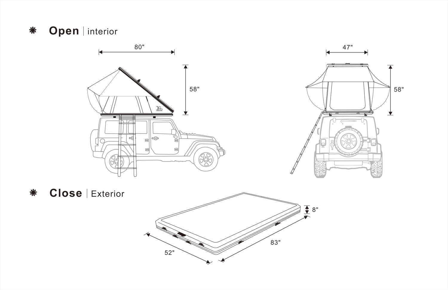 | COMPARE | RTT Triangular Aluminum Hard Shell Car Camping SUV Rooftop Tent | 4x4 Camping car truck pop up triangle hardshell rooftop tent | Aluminium Triangle Hard Shell Rooftop Tent with Extra Large Rainfly | ||