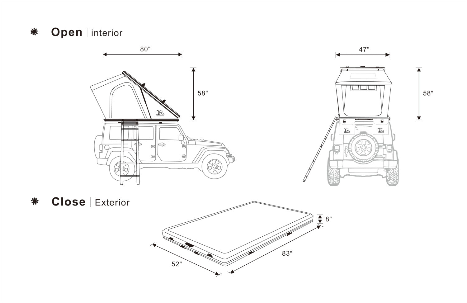 YoungHunter rooftop tents come in a variety of sizes to fit most vehicles. Our website includes a handy sizing guide to help you choose the perfect tent for your car's roof dimensions and weight capacity.